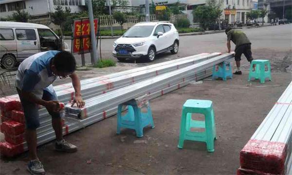 小伙伴们配合默契,齐心协力搬运铝型材。