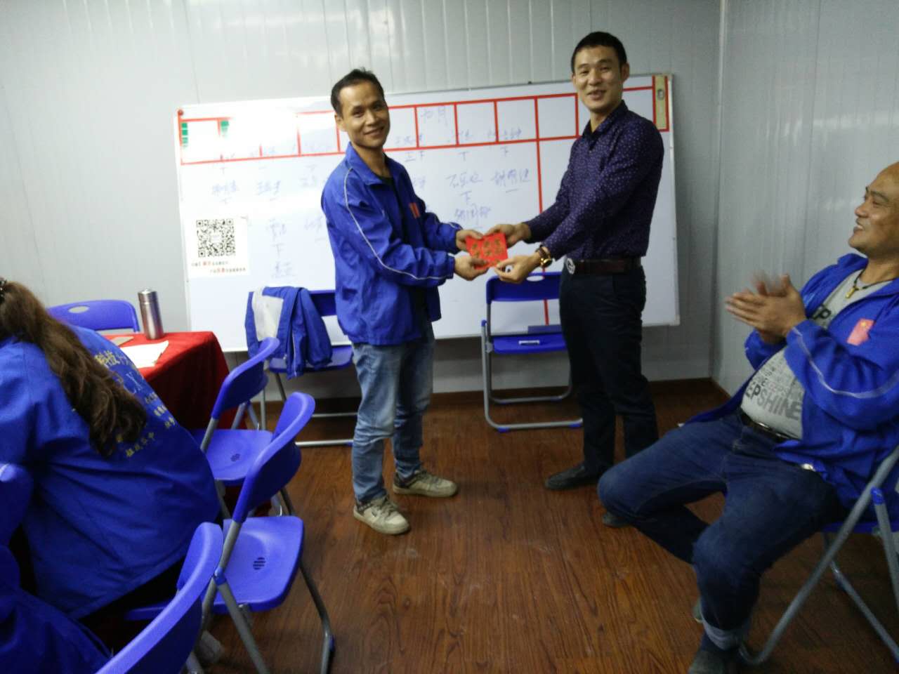 胡总经理(右图)为每月度最佳奉献奖荣获者王成建(左图)颁发奖金,同时祝贺欧亿网页版家人王成建荣获双星(八月、九月)进而也感谢无私奉献的欧亿网页版家人,感谢他们的辛勤付出,有着每一位欧亿网页版家人的无私奉献,相信欧亿网页版定会越走越远。