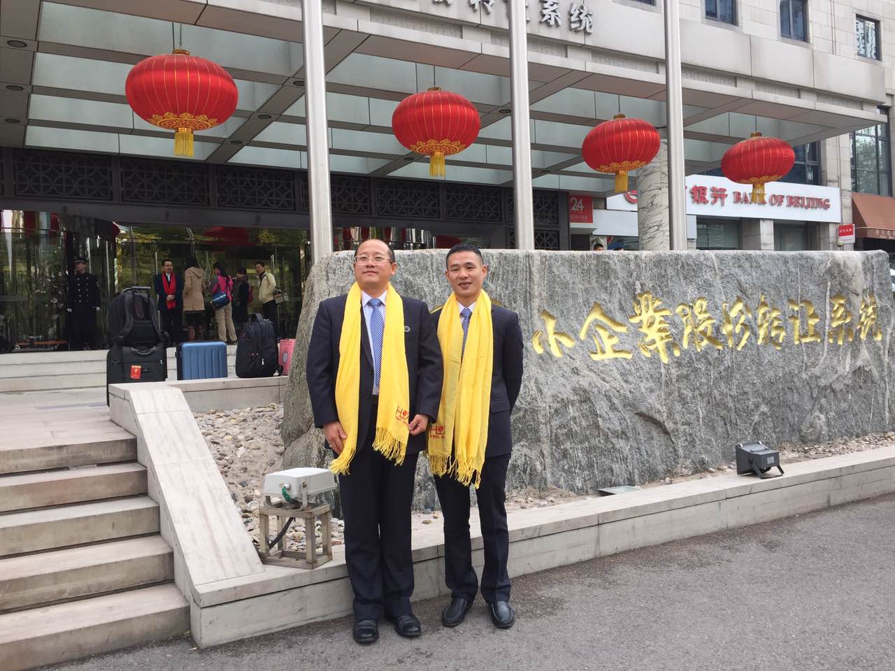 钟辉董事长(左)与重庆公司胡伟路总经理(右)在全国中小企业股份转让系统大厅前合影