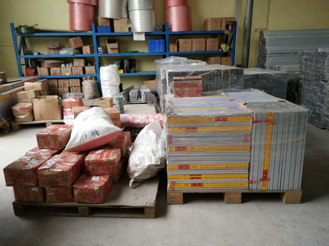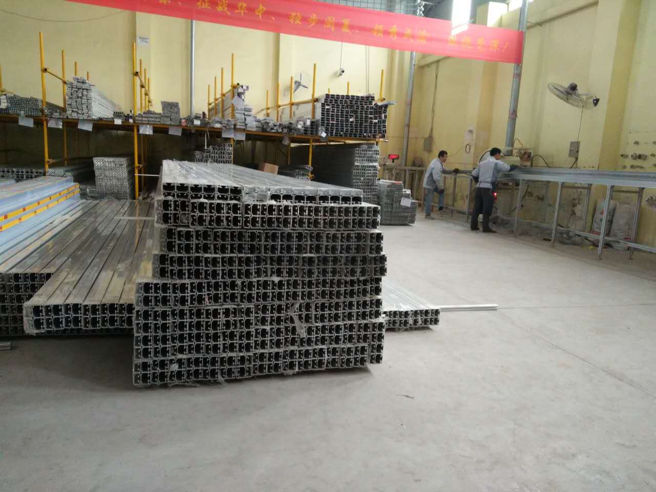 出货区整齐摆放着待出货铝型材及各配件材料,专业的作业模式