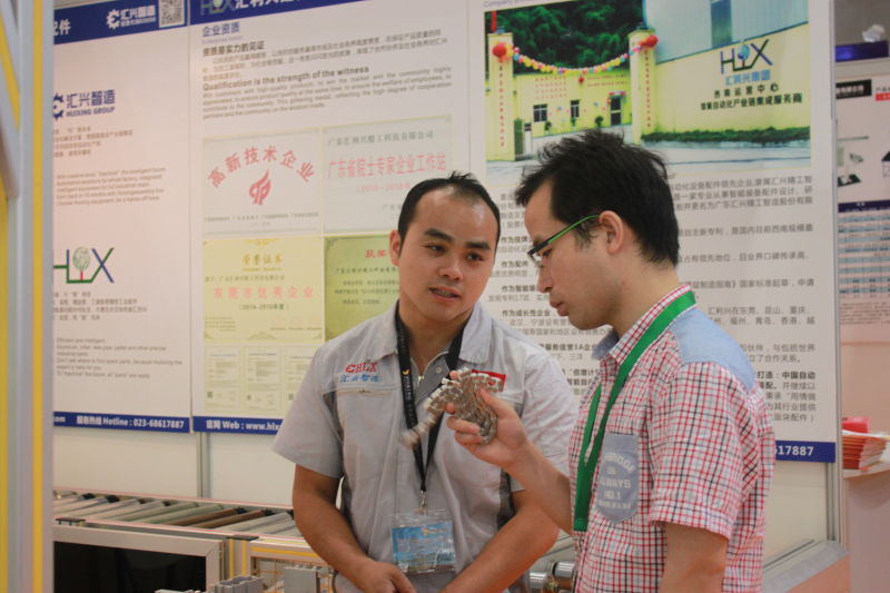 本展会中:精益管件架、铝合金柜及架子、流利条、摩擦线体、滚筒线等材料都以我司相关配件及铝材精工打造,现场客人咨询不断并现场交接相关产线问题,我司人员耐心为每一位客人讲解相关问题并予以提供更适合的产线解决方案。品牌及专业度现场荣获客人的信任,并与之合影。