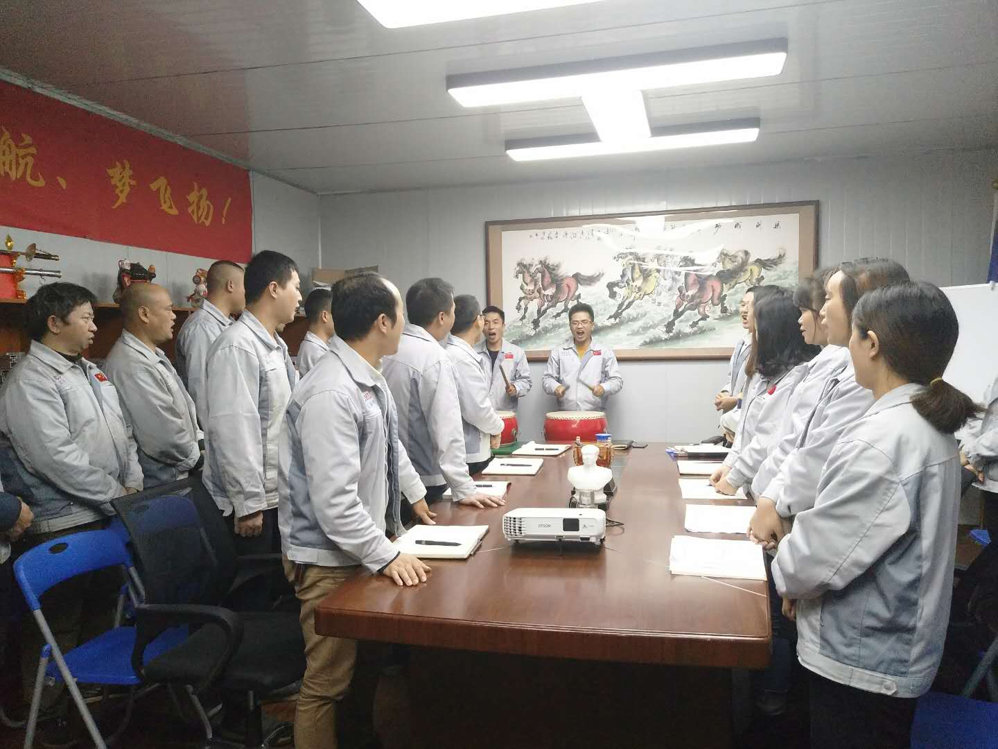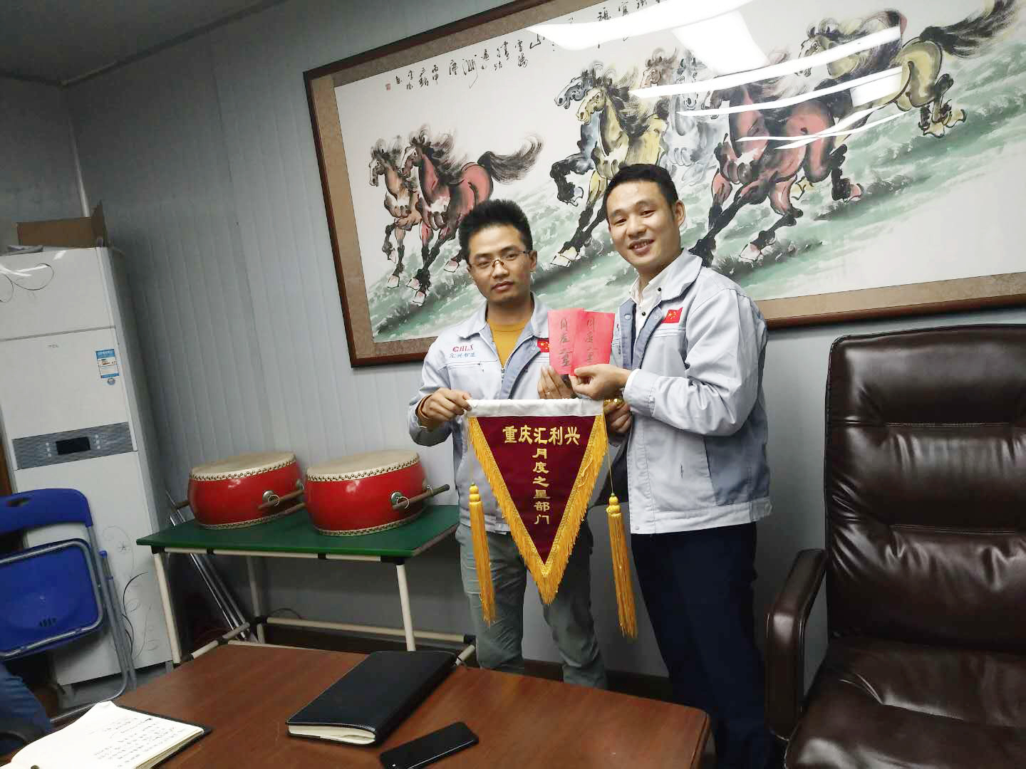 依次估称签到入场 会议召开前,大家依次对企业三道(人道、孝道、商道)行三鞠躬,并督促我们应时刻感谢自己、感谢父母及我们的合作伙伴;同时进一步也敲响了欧亿网页版士气鼓,士气比武器更重要进而不断的鼓舞自己鞭策自己,随后会议正式开始。 敲击士鼓,士气比武器更重要 会上,首先由张副总对十月份做相应总结,谈到部门之间的配合度及个人对于岗位的付出,并表示随着时间的增移我们需加快自己的脚步紧追我们的目标;其次每月度之星及部门的选举和颁发奖金;然后胡总做会议的总结,谈到各部门及先进个人的年度总结进而也盼望及希望每个人能更加努力、用心拼搏并在梦想及目标的道路上,一路披荆斩棘、奋勇向前毫不退缩。 张副总发言讲话示意图 如果说,有一种力量可以让人坚韧不拔,那便是团队的力量;如果说有一种力量可以让人心头一暖,那便是团队的力量。大家相聚一起互助友爱、努力奋斗,用最贴切的关怀及行动来表达对同事间的关爱和对工作的付出从未求回报,而他们就是此次荣获月度之星的“张副总”和月度部门“销售部”。在此感谢他们的奉献及付出同时在此祝贺他们,进而也希望他们在此后的路程上能更加努力。 双星代表人“张副总”(图左)与“胡总”(图右)进行合影