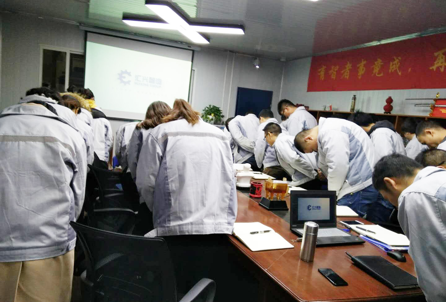 全体人员宣导企业理念并向企业三道(人道、孝道、商道)行三鞠躬