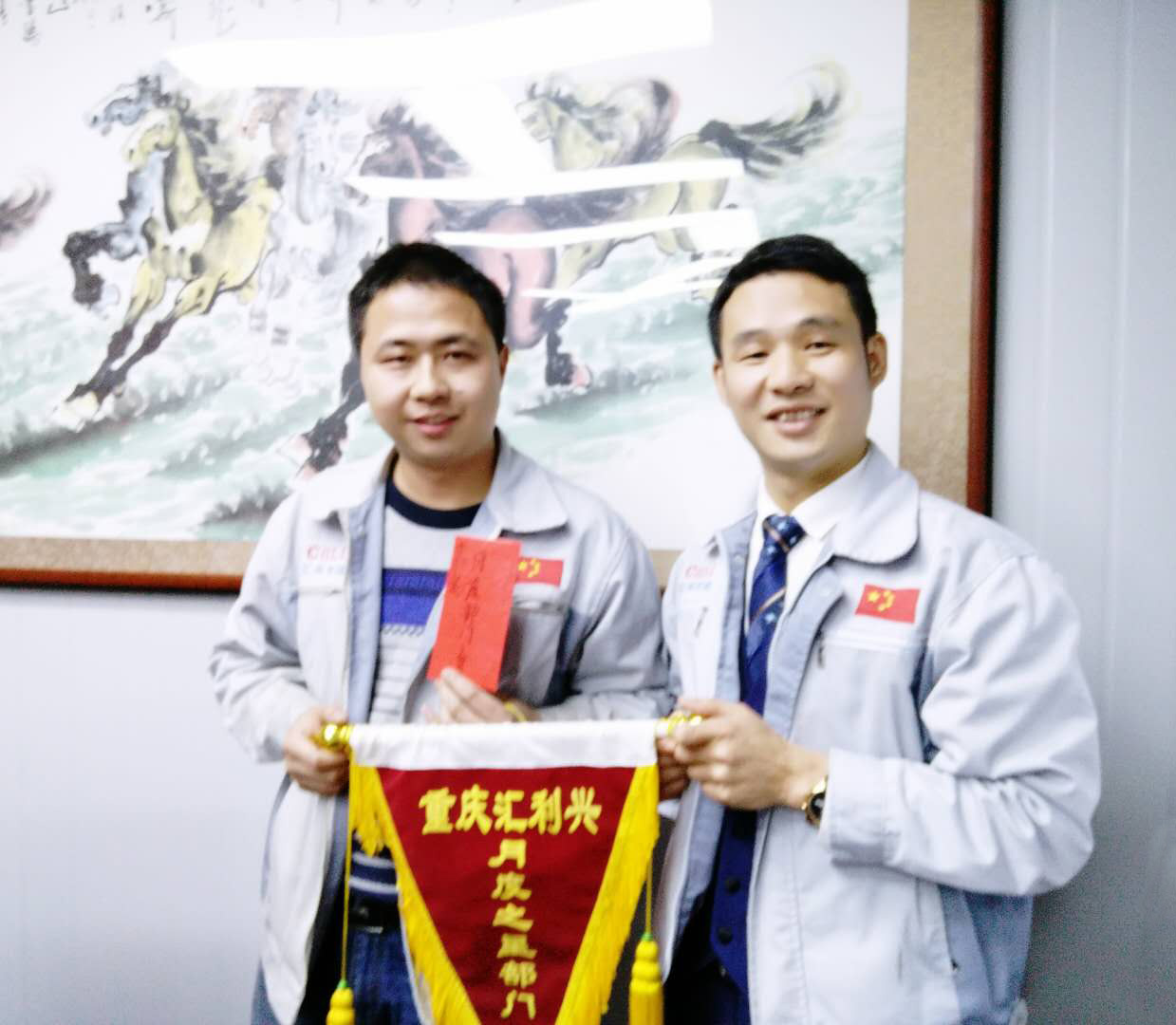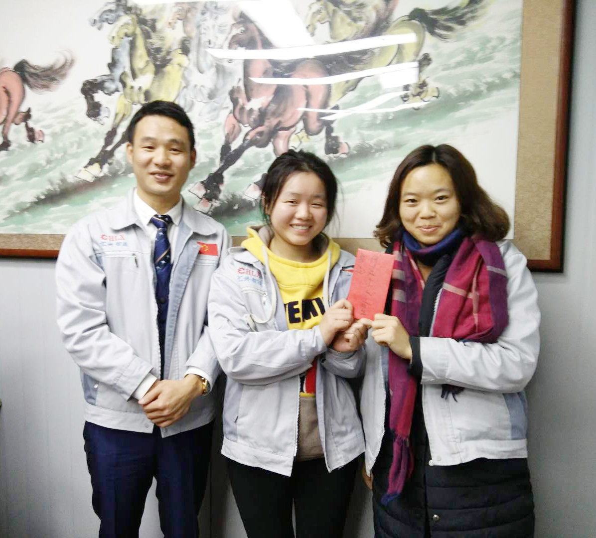 月度之星胡前敏、姜英(图右)与胡总经理(图左)同框合影