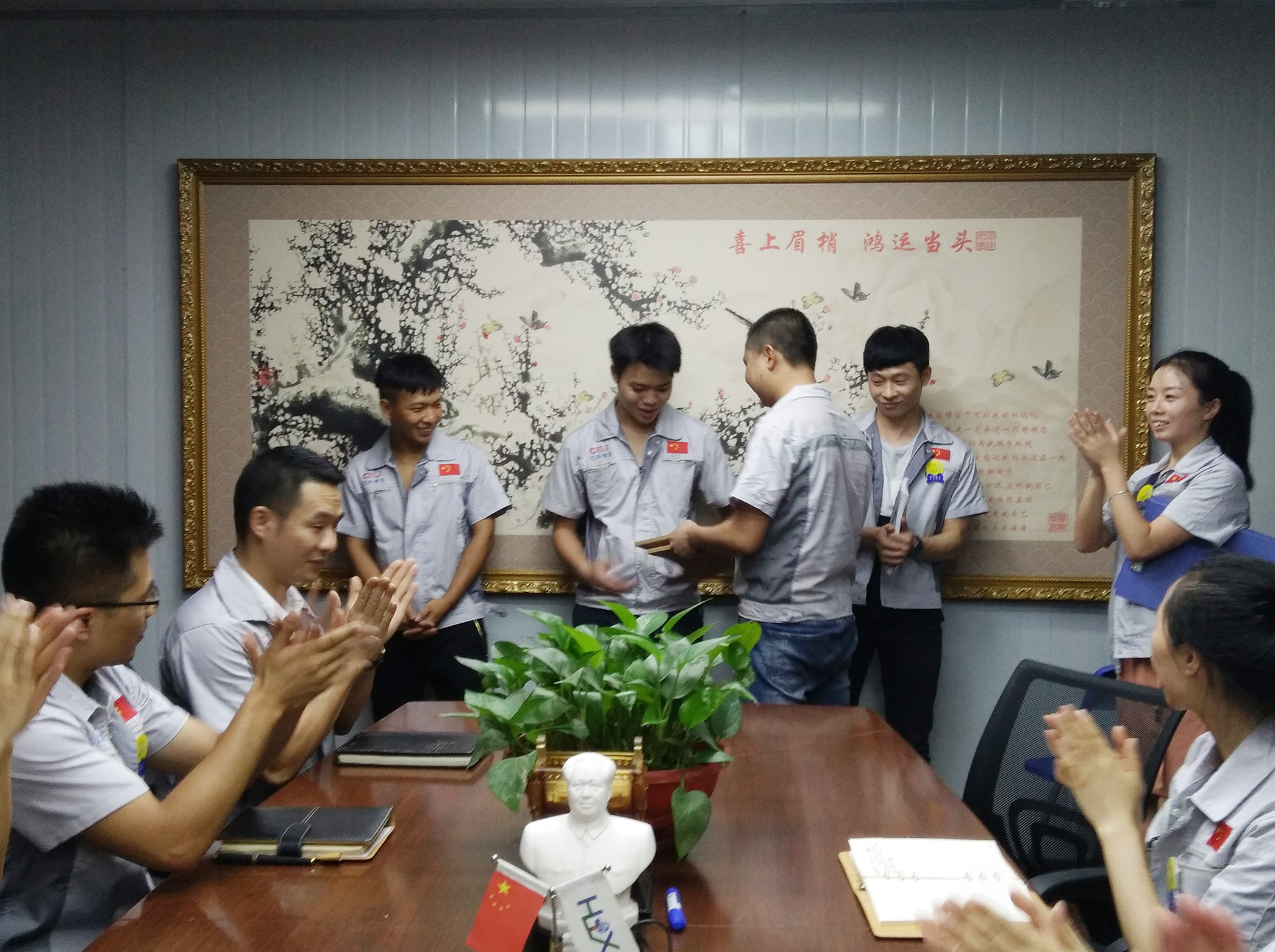 7月19日,欧亿网页版(重庆)公司全体人员在欧亿网页版学校召开6月份月度会议。会议持续近两小时,现场气氛十分热烈,由行政部主管陈香草主持。 剑风所指,所向披靡。会议开始前,主持人陈香草带领大家移步汇兴文化厂地,整肃衣冠 ,对汇兴人倍加推崇的“三道文化”(孝道、商道、人道)郑重地鞠躬,庄严宣誓企业精神“用情做人、用心做事”,团队精神“忠诚团结、勤奋进取”,随后由汇兴两位女精英击士气鼓,凝人心、鼓干劲;紧接着胡伟路总经理授予采购部凝聚亮剑精神的一把宝刀,亮出气势、汇聚力量,砍前行荆棘、勇踏汇兴征途。 图一示意图 图二采购部家人手握宝刀合影图 随着家人们热情高涨,会议开启第二议程。全体人员随主持人巡视仓储A区长材区与仓储B区配件区库存及加工区面貌,集思广益、广纳谏言并相互监督面貌的保持。 图三示意图 作为挂牌企业(股票代码:839258),欧亿网页版长期以来,一直重视新鲜血液的注入和人才的引进,截止今日欧亿网页版从之前的几个人变成现在的几十人,团队力量逐步增强,为行业贡献力量愈发强大。会议开启第三议程-新员工入职欢迎仪式,物控部徐主管为新员工颁发纪念品。 徐主管为新员工颁发纪念品示意图 为了增强企业凝聚力,表彰先进,树立楷模,激励员工奋发向上,形成人人争当先进,人人为公司发展做贡献的行为,实现持续有效的激励机制和企业良好传统,会议发起第四个议程——表彰仪式,对6月份在工作中表现突出的优秀团队和个人给予表彰。 优秀团队工程部家人获得者与张副总合影示意图 月度之星周荣、李如洪家人与张副总合影示意图 随后部门负责人(徐主管、蒲经理、熊经理)作2018年度工作总结,总结上半年工作及部门的得与失,有则改之无则加勉。谈到各部门间配合密度,工作作风及个人精神面貌等相关事宜。并随即提到欧亿网页版独有的企业文化“家人”,汇兴每一位同事都是彼此的家人,并肩作战的家人,共筑汇兴梦的家人。 徐主管、蒲经理、熊经理作2018年度工作总结示意图 会议最后,胡伟路总经理作会议总结及未来展望。会上,胡伟路总经理首先对三位负责人所作的发言,提出了新的总结及建议;其次,针对目前所存在的短板作出了相应的指示并勉励汇兴人要学会总结、学会反思,这不仅是一种智慧,更是下次进步的开端。并表示,欧亿网页版团队至始至终都是最棒的团队,永不言败的团队;因此要坚信自己、相信自己,稳扎每一步伐,向前冲! 图四示意图 最后,全体汇兴人起立,整肃衣冠,击士气鼓并齐喊“为梦想冲刺,我是欧亿网页版的一名战士”,整个会场环绕着呐喊声,现场激情澎湃、士气高昂、振奋人心。