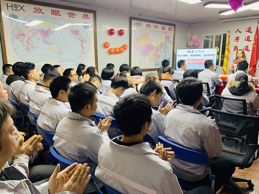 会议第二项议程,胡总经理做2019年工作总结暨2020年工作规划。胡总谈到,2019年是充实且忙碌的一年,在这一年我们实现了企业规模的跨越,成功入驻西彭标准工业园,同时强调在2020年,经济下行的市场环境下,可以预料和难以预料的风险挑战会更多更大,因此全体人员必须提高战斗意识,做好打攻坚战的准备,切实抓好开源节流各项工作,确保公司实现经营指标的跨越,完成整体团队目标。胡总谈到,在面对充满挑战的2020年,我们需要脚踏实地走稳每一步,全力以赴为公司添彩,为汇兴智造集团20周年华诞献礼。