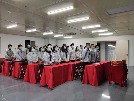 会议第一项议程,企业文化的展示。全体汇兴人整肃衣冠对汇兴人倍加推崇的“三道文化”(孝道、商道、人道)郑重地鞠躬,庄严宣誓企业愿景:“成为全球领先的智能自动化产业链集成服务商”,企业使命:做受尊敬的好人,造受尊敬的产品,办受尊敬的企业,建受尊敬的平台,企业精神“用情做人、用心做事”,团队精神“忠诚团结、勤奋进取”,工匠精神:创于手、精于工、智于器、匠于心、品于行等。随后由胡总经理和张副总击士气鼓,士气比武器更重要,现场气氛热烈、振奋人心。