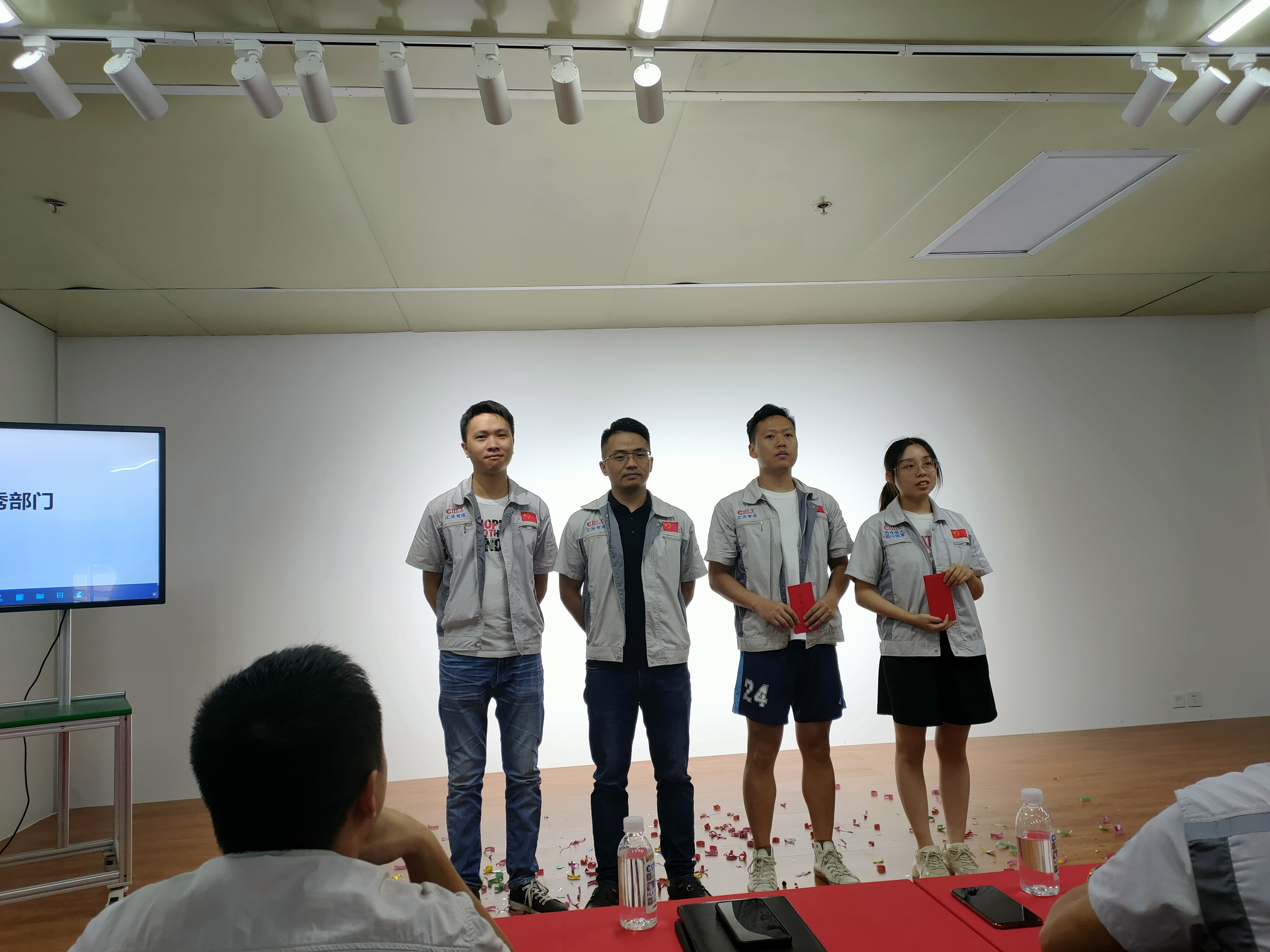 会议第二项,嘉奖环节。一个企业的发展必定离不开积极勤奋、风雨同行的优秀人员.由公司副总张国桃亲自为本月月度之星及优秀部门品推部颁发奖金,同时也激励着每位员工不忘初心、砥砺前行!