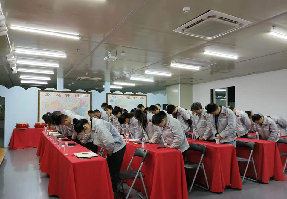 2020年10月17日13点45分,欧亿网页版西南工厂全体员工在欧亿网页版学校召开9月月度会议,由事务中心主管陈香草主持。 随后二位女精英击响士气鼓,鼓舞士气,鼓舞着战友们奋勇前进,并以这种以评促进、你追我赶的“激励文化”,潜移默化融于员工的日常工作中,同时也鞭策着员工们不断争先创优,推动企业发展的内生动力,从而形成“我来干、抢着干、努力干”的工作作风。现场鼓声震天,士气如虹。 会议第一项议程,企业文化展示。全体汇兴人整肃衣冠对汇兴人倍加推崇的“三道文化”(孝道、商道、人道)郑重地鞠躬,庄严宣誓企业愿景:“成为行业优秀的智能自动化产业链集成服务商”,企业使命:做受尊敬的好人,造受尊敬的产品,办受尊敬的企业,建受尊敬的平台,企业精神“用情做人、用心做事”,团队精神“忠诚团结、勤奋进取”,工匠精神:创于手、精于工、智于器、匠于心、品于行,行为准则:口中有德、目中有人、手中有技、心中有爱、行中有善,职业准则:对工作热脸、对同事笑脸、对错误红脸、对浪费黑脸、对荣誉争脸。
