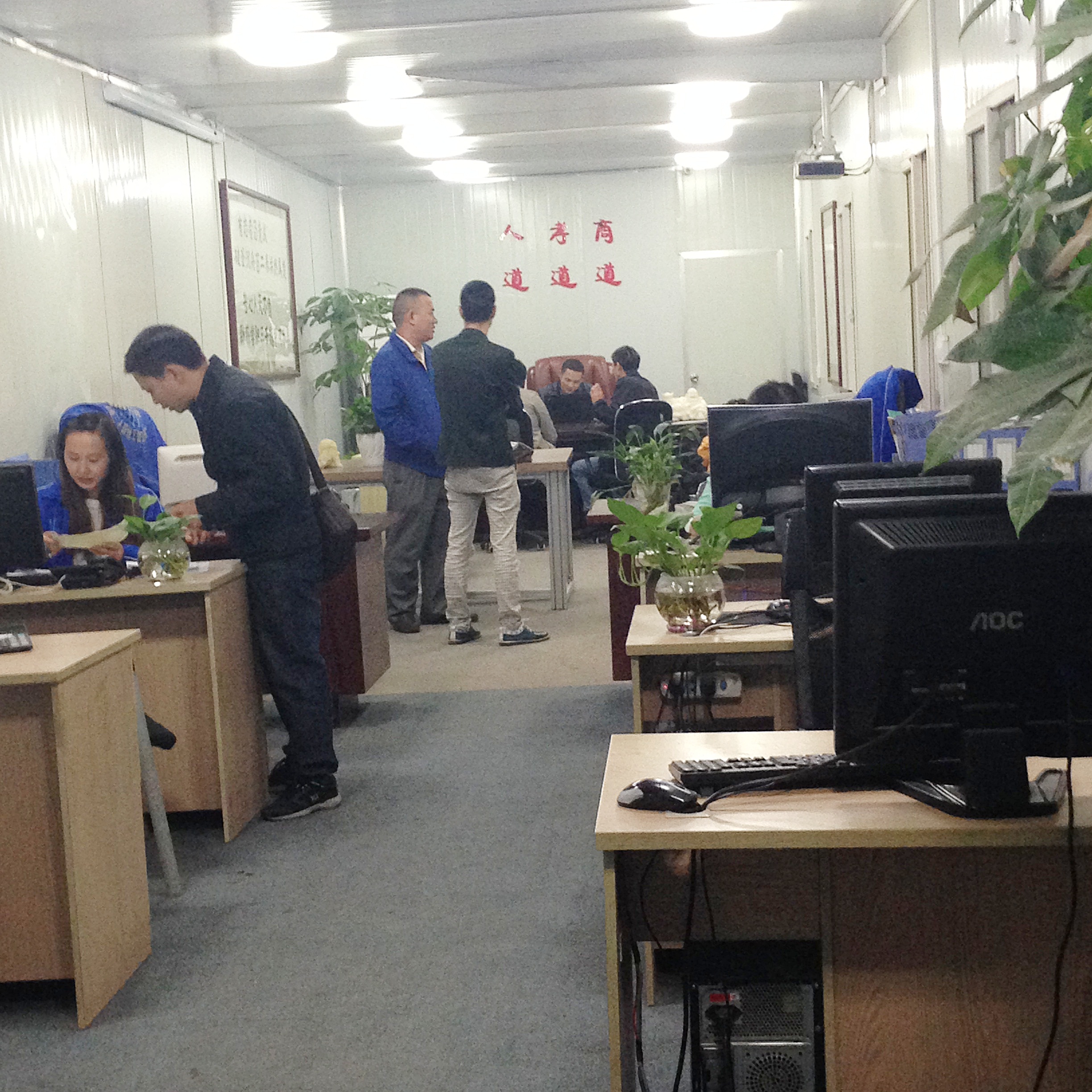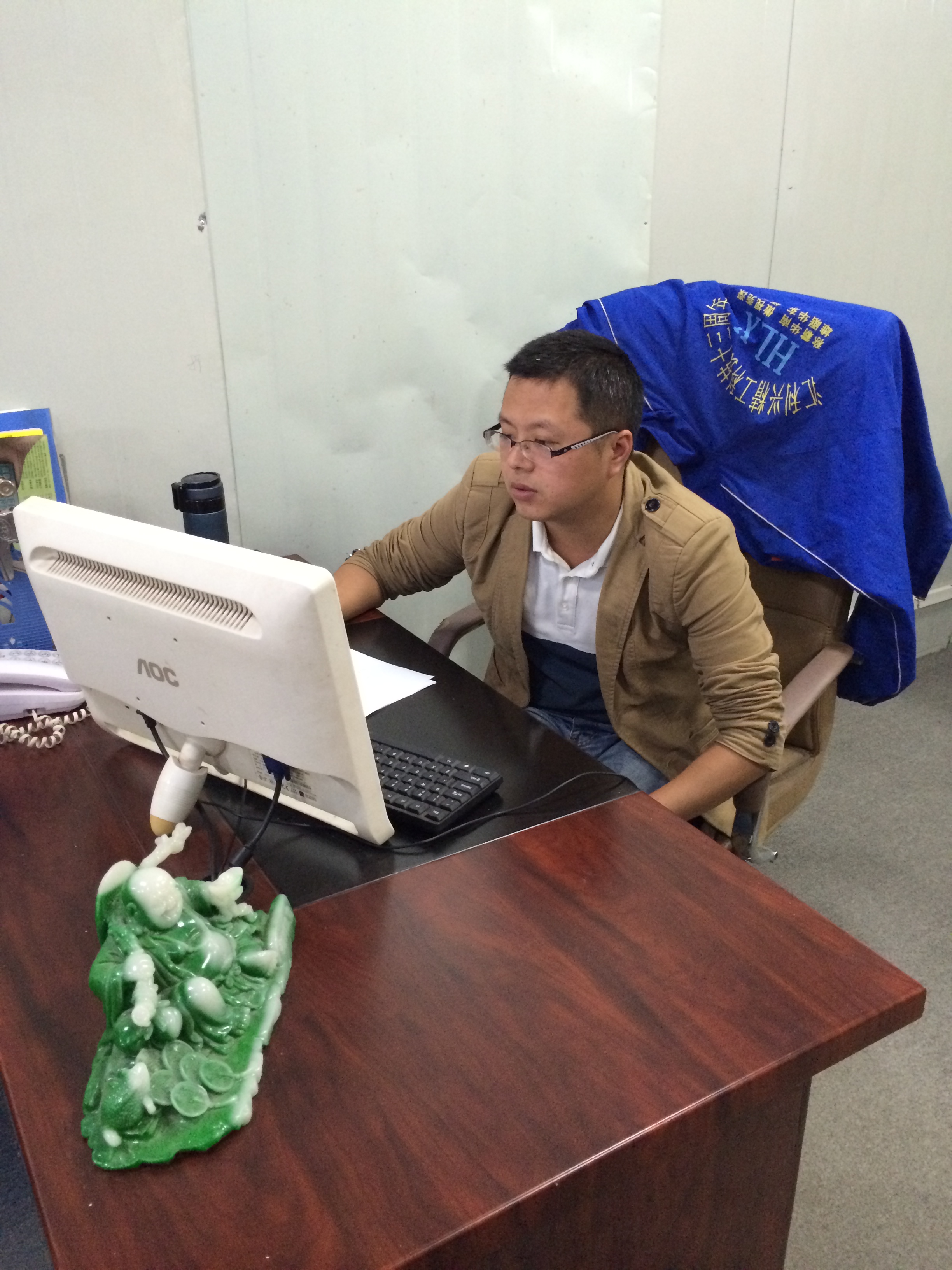 (上图)穿墨绿色西服、浅灰色格子裤子的先生)是我们公司的副总,他的笑容是我们公司最灿烂的。经常都是一张笑脸,不管是面对客户还是对同事。在面对客户的时候,他经常是一张纸、笔、计算机,这样的充分准备,显得我们更专业。不管是为客户设计线体还是为客户计算材料,这些必不可少的东西更加体现了我们的专业性。